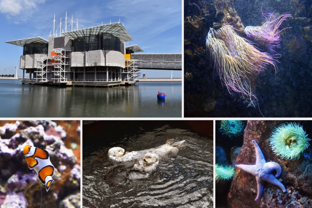 The Lisbon Oceanarium is the largest indoor aquarium in Europe and a must see when you visit this part of the city. Its large collection of marine species totals about 16,000 individuals of 450 species. The main water tank holds 1.32 million gallons (5 million liters) of water and is home to over 100 species from around the world including sharks, rays, barracudas, groupers, and moray eels. It’s made up of four separate marine habitats creating the illusion of a single aquarium and features terrestrial and marine ecosystems, as well as the temperate, tropical, and cold waters of the Earth’s oceans. The tank is massive and a 530 square foot (49 square meter) acrylic window on each side offers visitors a stunning view inside. The exhibit also has smaller windows spaced around it and benches. I could have easily sat there for hours watching the constant motion of this amazing underwater world.