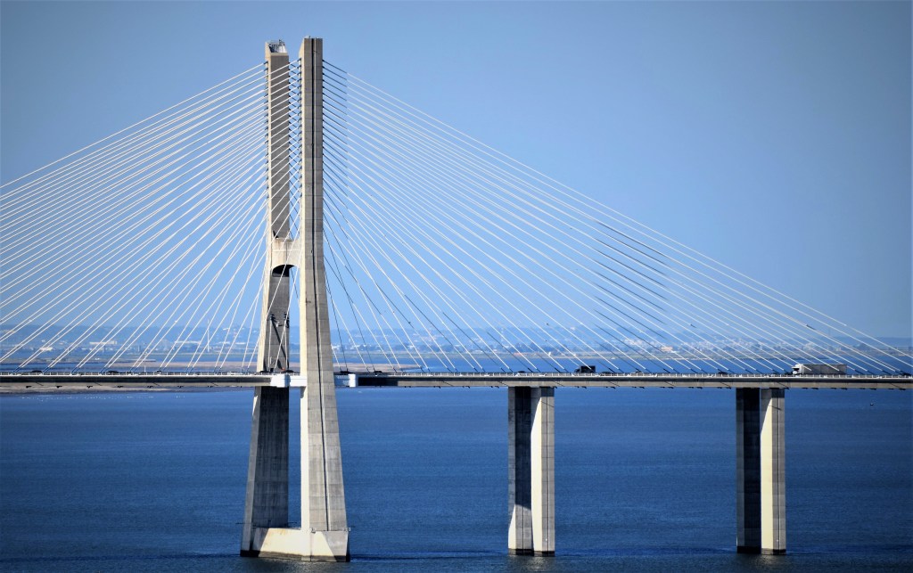 A short walk from the Oceanarium brings you to the south station of Telecabine Lisboa, a gondola ride over the Tagus River estuary. The ride along the 3/4-mile (1,230 meter) route takes about 12 minutes and carries you 98 feet (30 meters) above the river and offers a breathtaking panorama of the Park of Nations, Vasco da Gama Tower, and Vasco da Gama Bridge. Round trip tickets are €8.00 for adults with a discount for children. The north station affords amazing views of the Vasco da Gama Bridge, which is the largest bridge in Europe and the fourth longest in the world measuring 10.7 miles (17.2 km) long and 492 feet (150 meters) tall. It was built to withstand an earthquake four times stronger than the one that devastated Lisbon in 1755. Construction began in February 1995, and it was inaugurated on March 29, 1998, two months before the opening of the World Exposition. Its name commemorates the 500th anniversary of Vasco da Gama’s arrival in India, in May 1498.
