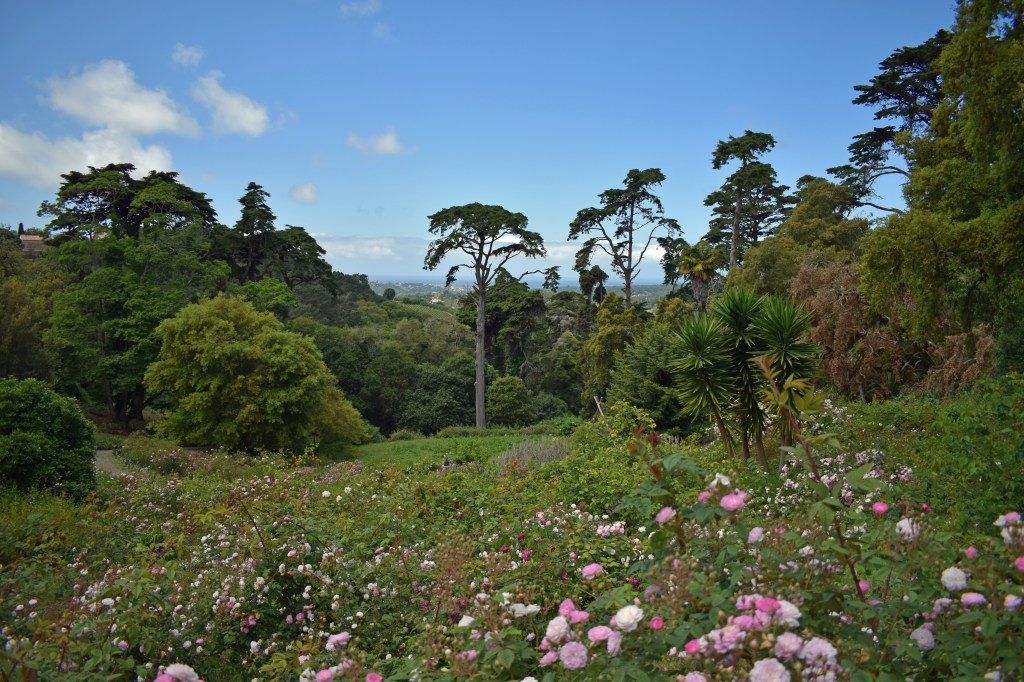As a lover of gardens, I’ve been to many in both the United States and Europe. At the top of my list of favorites are Mendocino Coast Botanical Gardens in California and Cawdor Castle Gardens in Scotland. Since visiting last May, the Park of Monserrate Palace now tops my list. It is stunning in both diversity and size. Renovations to the park began when British novelist and art collector William Beckford moved into Monserrate in 1794. His additions include an artificial waterfall and a stone arch. In 1856, wealthy textile merchant Sir Francis Cook acquired the property and commissioned major renovations to the grounds. He hired landscape designer William Stockdale, botanist William Neville, and master gardener James Burt to create a park steeped in Romanticism. The resulting park of 82 acres (33 ha) includes over 3,000 exotic species collected from around the world, twisting paths, lakes, and waterfalls.