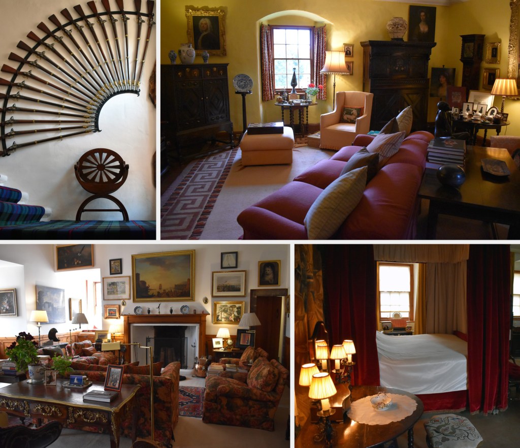 As we approached the castle, our tour guide pointed out the various defense features including a drawbridge, moat, iron gate, and turrets. While the earliest documented date for the castle is 1454, architectural historians have dated the style of stonework in the four-story tower to approximately 1380. Between the 15th and 19th centuries, numerous additions were made to the castle including living spaces and a garden. Our guide told us that the property passed from the Calder family to the Campbells in the 16th century and is currently owned by Countess Angelika Campbell.