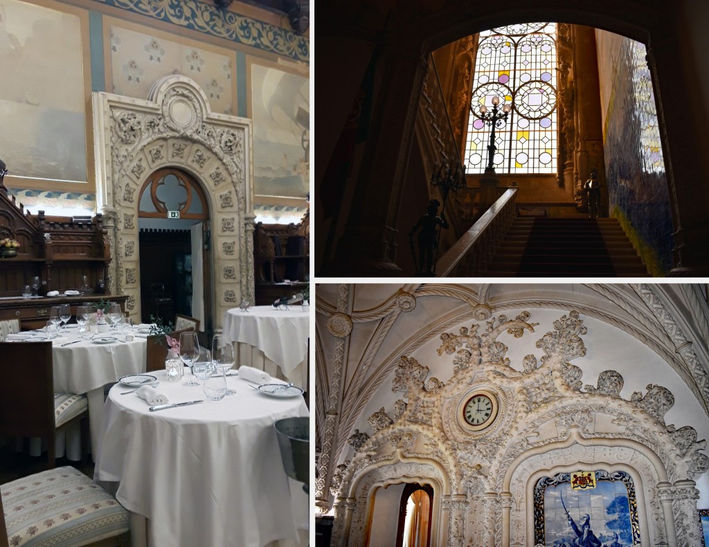 The ornate exterior features intricately carved stonework, arched windows, turrets, gargoyles, and painted tiles, and reflects both nature and the maritime history of Portugal. Complemented by the stately boxwood garden and stone fountain, its walls in varying shades of peach and beige stand out from the surrounding forest. It’s no wonder why the hotel has hosted royalty, politicians, authors, and film stars over the years. It is simply stunning!