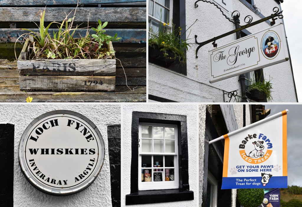A tall stone cross along the harbor also caught my eye and upon closer inspection I noticed a woven Celtic vine design carved into the harbor-facing side. Historians have dated it to the 1400’s and believe it was originally a memorial to a noble family. Inscribed down one side (translated from Latin) it reads: “This is the cross of noble men, namely Duncanus MacCowan, Patricius, his son, and Mael-Moire, son of Patricius, who caused this cross to be made.” While its true history is unclear, a likely theory is that it was moved from a graveyard to the harbor when Inveraray was relocated. There also is evidence that it was used as a Mercat (Market) cross at some point. A Mercat cross represents the rights of a village to hold a regular market or fair and they were used for gatherings, royal declarations, and even for executions.