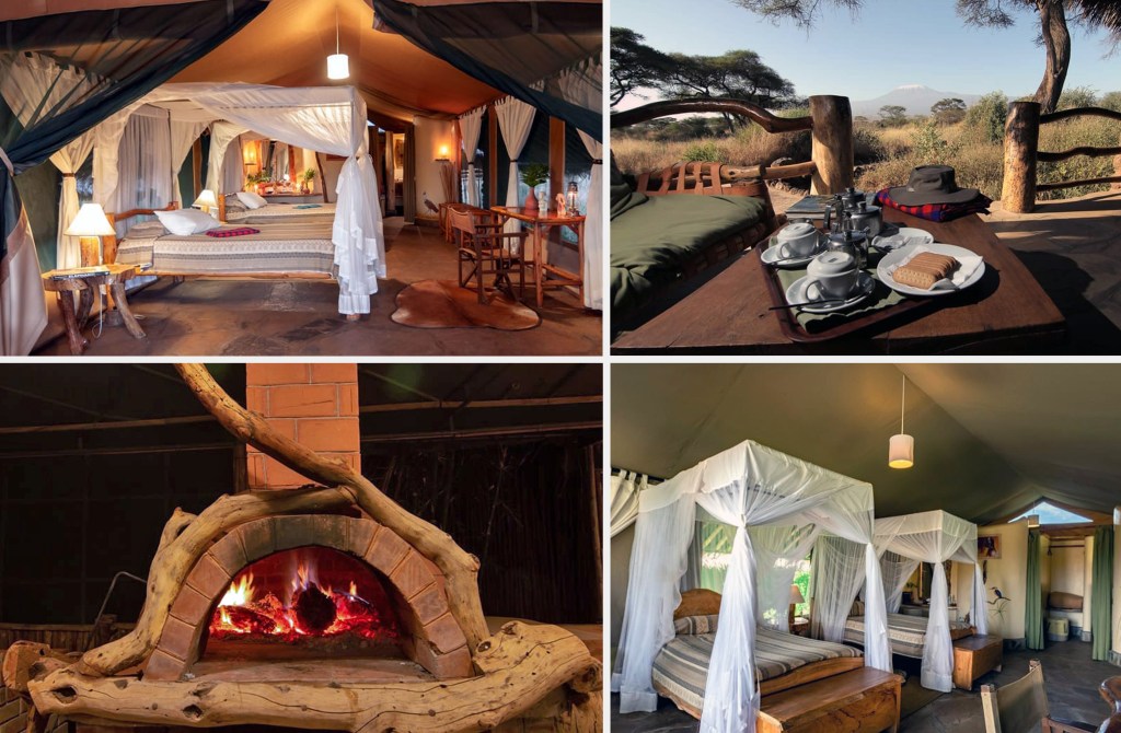 After unpacking a few things, we made our way to the dining tent for the lunch buffet. We had a private table, and our package included all meals, coffee, and tea. Bottled water, sodas, and alcohol were extra but priced very reasonably. I was blown away by the variety of food choices and everything I tried was very fresh and delicious. My favorite of course was the fruit and dessert bar which had at least one chocolate option at every meal. They also had a salad bar, a soup and bread bar, and a hot food station with vegan, vegetarian, and meat and fish selections. With full bellies, we went back to our tent to relax before our 4:00 pm game drive into Amboseli National Park.