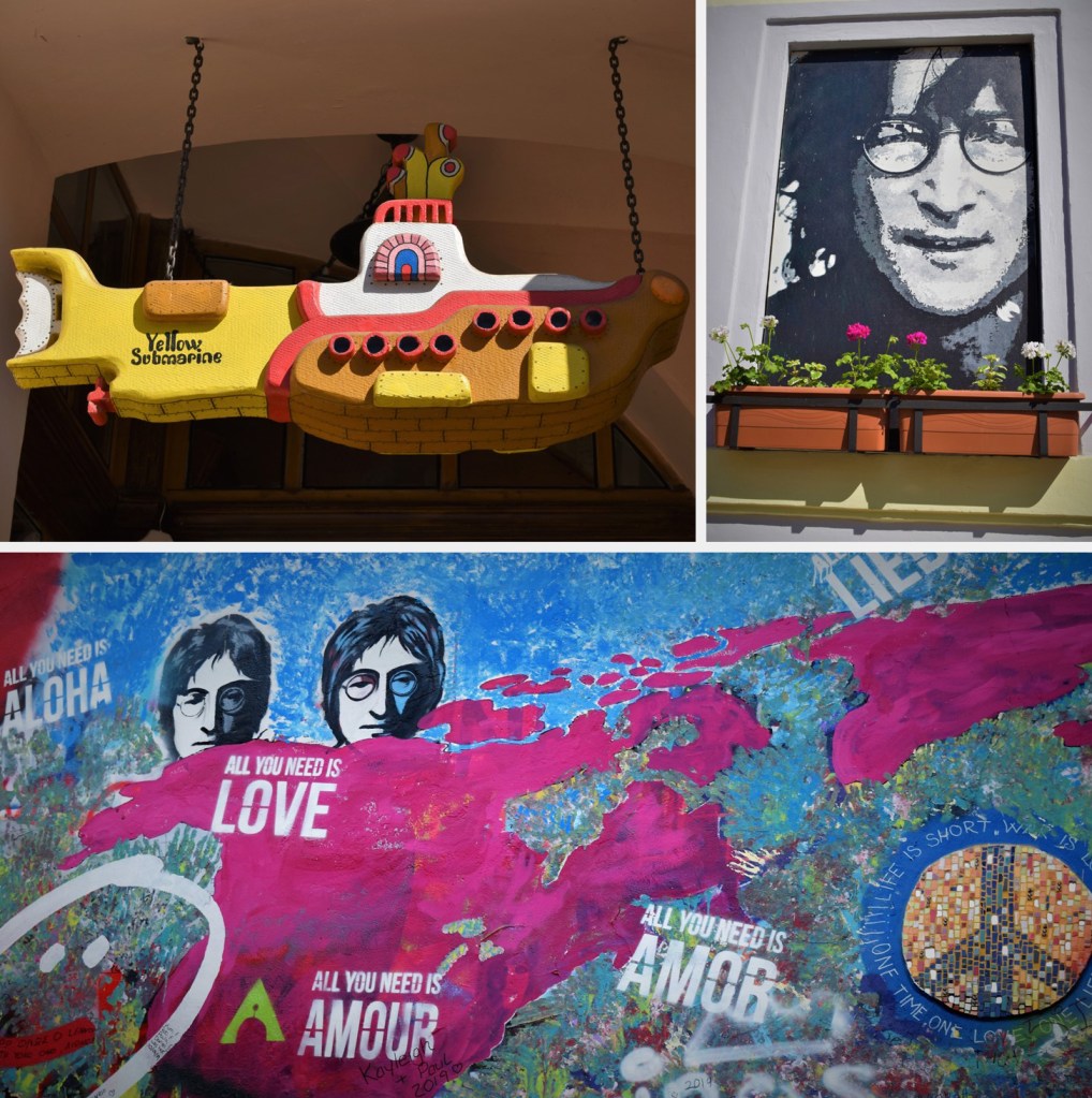 Rick and I spent our final night in Prague at a charming old hotel near the Charles Bridge. As we didn’t have an agenda planned for the day, Mesh suggested that we visit the nearby John Lennon Wall. After his death in 1980, the stone wall surrounding the Maltese Gardens was transformed into an impromptu memorial with a painting of the John’s face. Lighted candles accompanied quotes from his songs about world peace and freedom. Unfortunately, slogans criticizing the totalitarian regime began to appear diminishing the memorial to John. The wall was renovated in 2019 with a portrait of John Lennon and pictures created by more than thirty artists from five countries. The new motif is a map of the world with “Freedom” written in thirty languages.