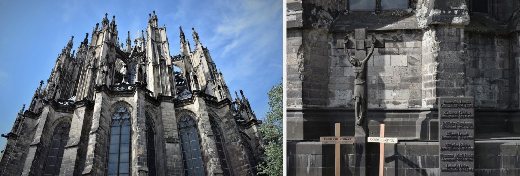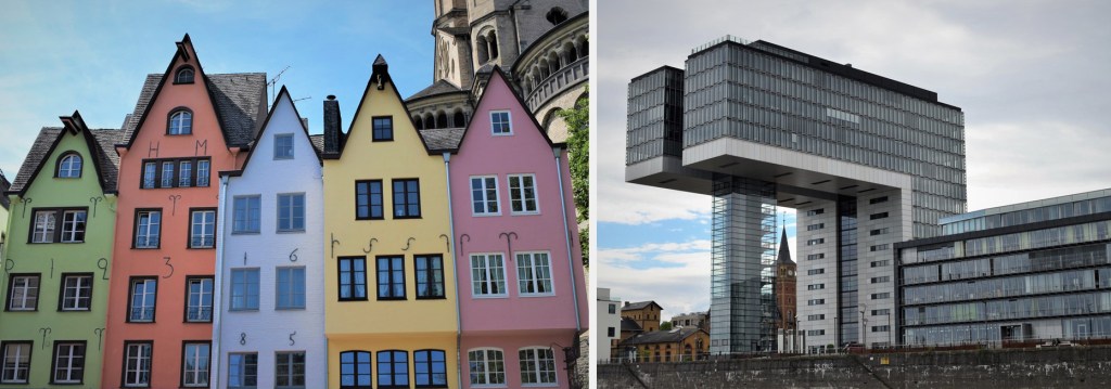 One of the most colorful parts of Cologne is located in Old Town, close to the Rhine River. Extending between the Old Market, City Hall, and the Fischmarkt (Fish Market), it is home to some of the historic houses that survived WW II. The Romanesque church of St. Martin-the-Great is a major highlight of Old Town. It was built between 1150 and 1250 and it is considered the most beautiful of Cologne’s twelve Romanesque churches. Our boat tour passed by the impressive and modern Kranhäuser (Crane Houses), a series of three upside-down L shaped buildings that house offices and luxury apartments. Their shape resemble the harbor cranes that were used to load and unload cargo from ships which transported goods on the Rhine. The first of the 17-story buildings was completed in 2008.